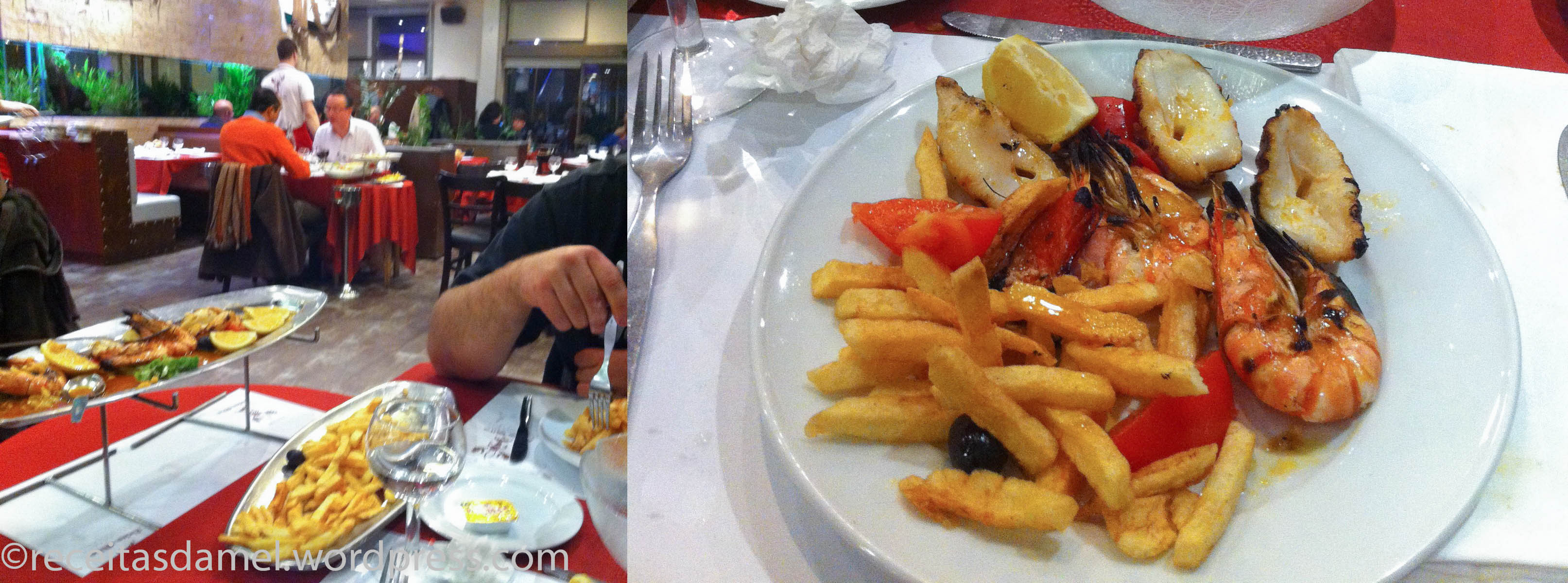 Celui de la ville d’Orgeval (589 avenue Pasteur) à côté de chez moi, je m’y suis rendue qu’une seule fois. Mais de se que j’ai retenu, le service est impeccable (très agérable de pouvoir parler en portugais avec les employés, on s’y croirai ^^) et le menu est complet et varié. On y retrouve tout les plats des restaus de là bas. Fruits de mer, viandes, accompagnements, desserts et les fameuses commandes en « doses ». Pour ceux qui ne conaissent pas sachez qu’une dose pour une personne est assez généreuse, elle peut même suffire pour deux personnes. On peut donc demander aussi une demi dose pour une plus petite portion ^^ Les plats sont généralement servis avec du riz, des légumes et/ou des frites.